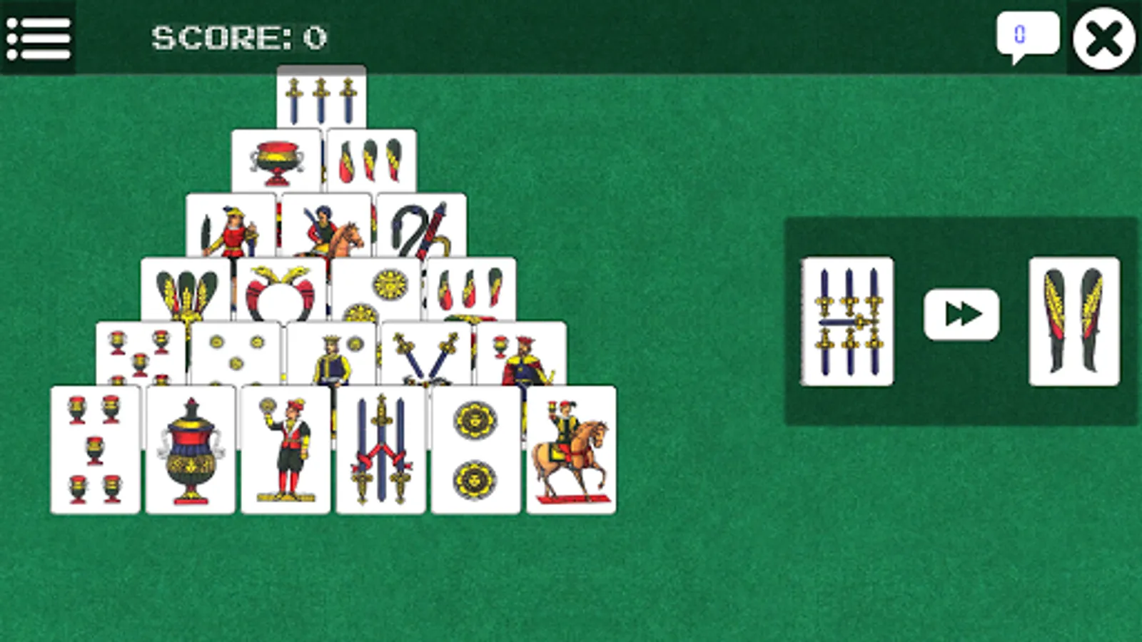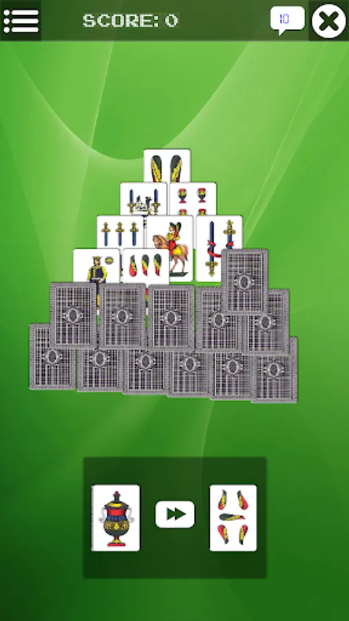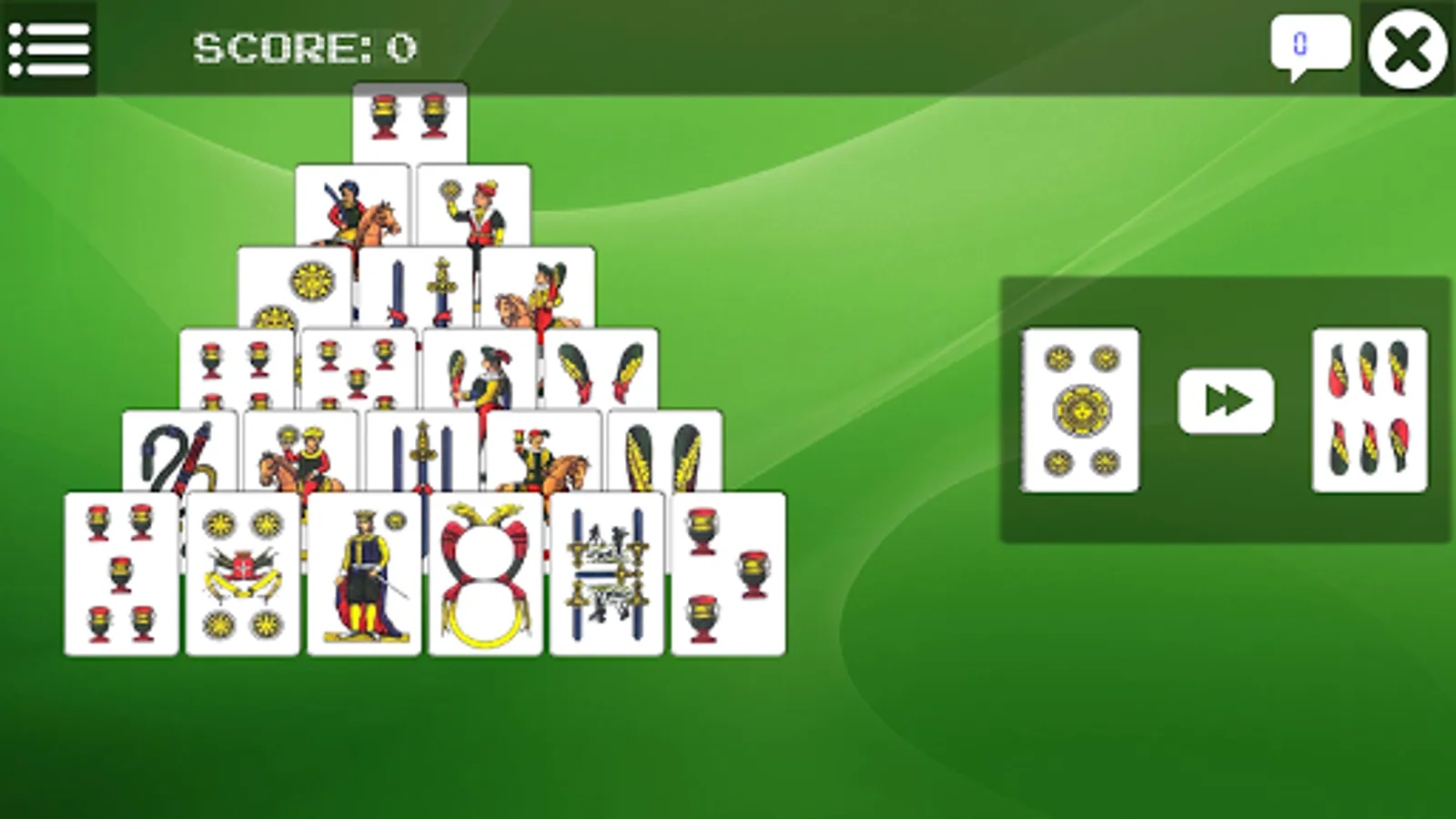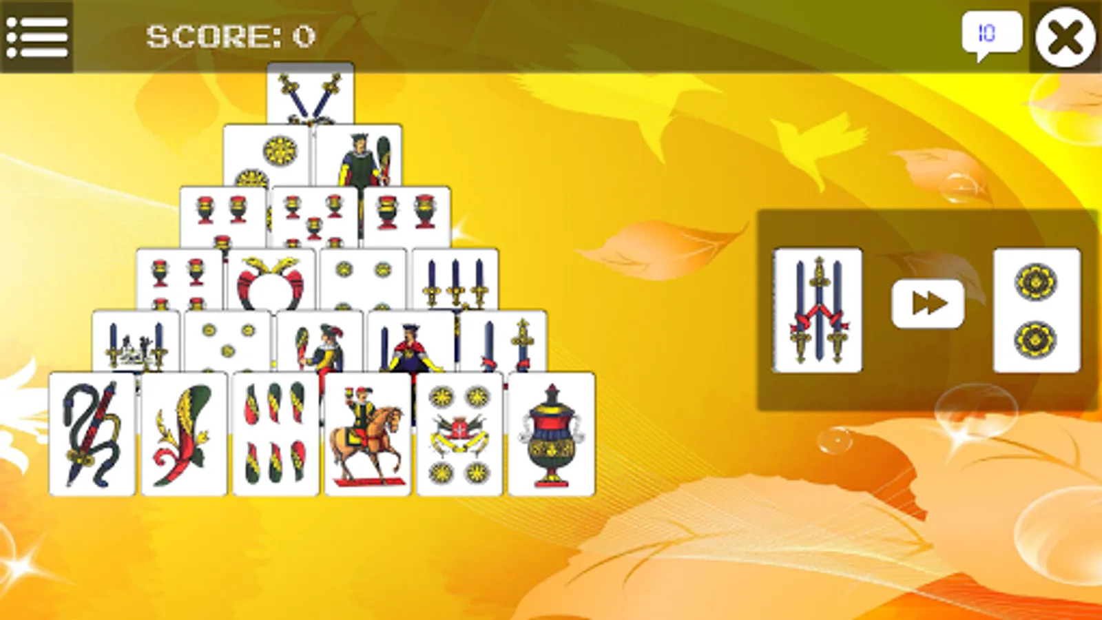 This is the classic solitaire at Pyramid played with a 40-card deck. In this version of the solitaire you have to pair the cards so that the sum is 10.
