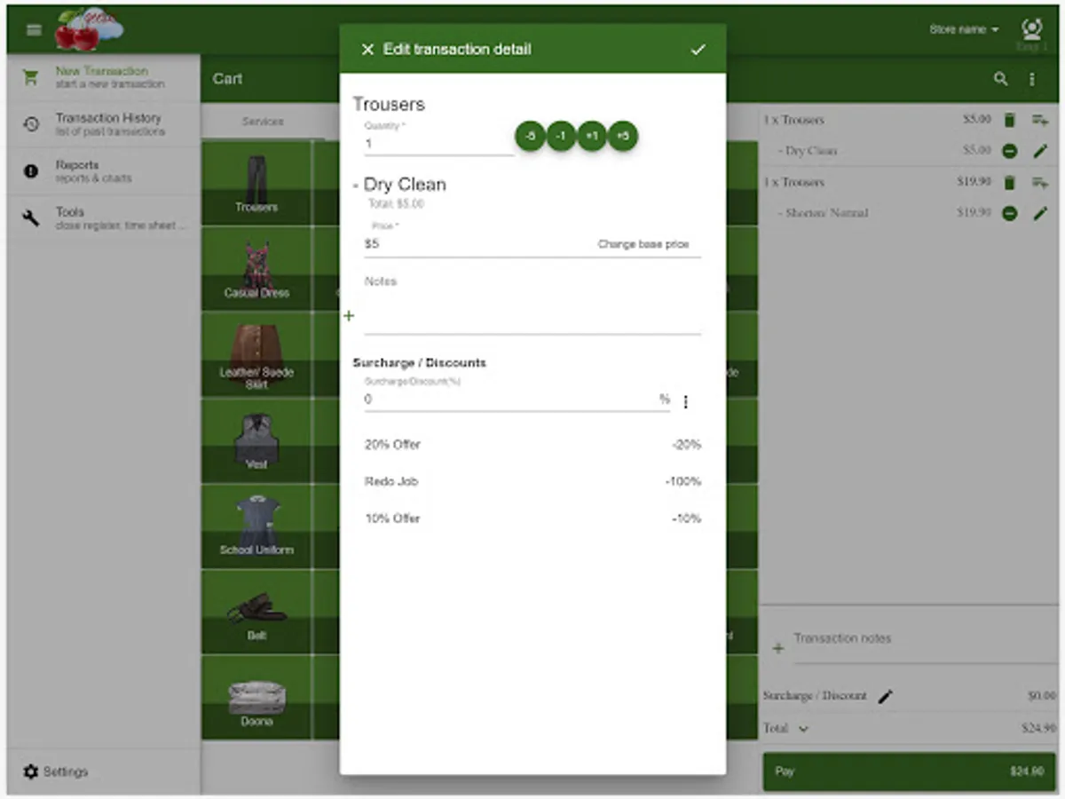 The most complete cloud-based POS and store management software for your dry cleaning, laundry, sewing, tailoring, and alterations business. It can be used on any Internet connected device ranging from PCs and Macs to iPhones and smart TVs. Includes CRM and Marketing functions like email and SMS marketing. Revolutionize your business using the text or email follow ups. Create an automated follow up once and let it bring more and more loyal customers forever!