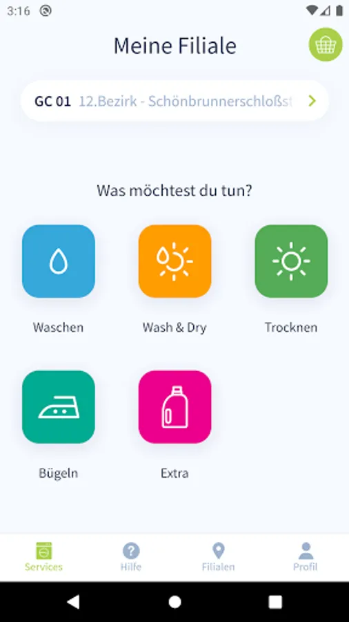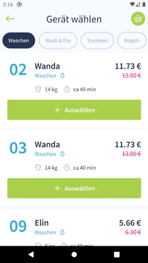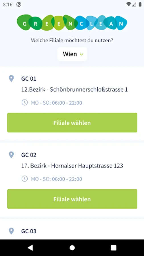 The App allows you to select and control the machines inside the Green & Clean laundries.