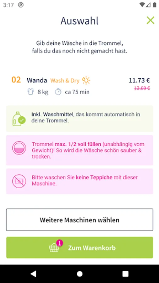 Directly from your Smartphone you can select the machine, pay and start the chosen program.