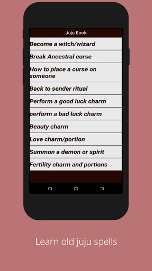 Juju book is a spiritual, traditional and religious book that contains information of old traditional and cultural juju practices in Africa. This Free app has been created from the knowledge old spiritual native doctors, witches and wizards.