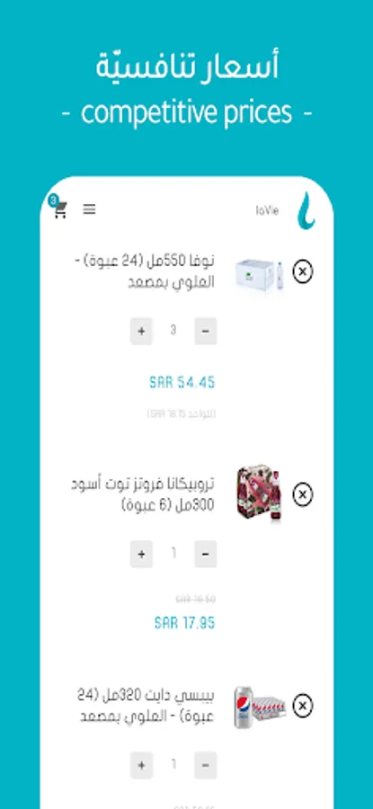 laVie app is an application which provides mineral water, juices, soda drinks. Users can order different types of drinks in one basket. The app also provides delivery service to individuals, companies, stores, and mosques.