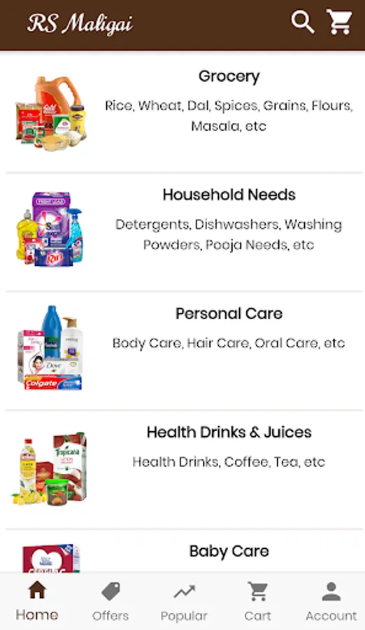 Buy grocery online from Rs Maligai at best prices and get them delivered to your home. Ordering through our app takes all the pain out of shopping, no more driving to the supermarket, facing parking hassles and spending your precious time just to make routine purchases. All you need to do now is to spend a few minutes on your smartphone and complete your shopping in a snap.