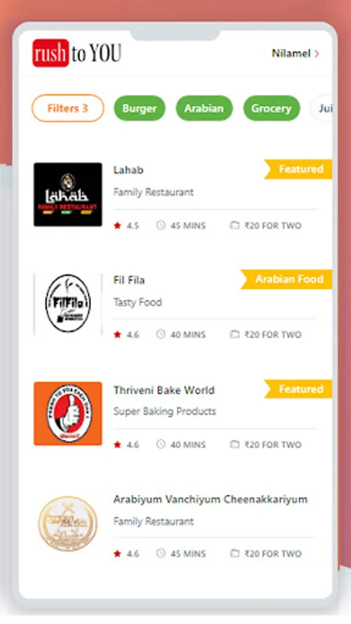 Whether you want a tasty dosa for breakfast, or a heavenly sadhya for lunch, or a refreshing coffee to boost up your mind, Rushtoyou is your one and only partner you need. Order your favorite food from your favorite Restaurants!! If you are in the office or home, or anywhere else, we will deliver it to your doorstep. Handpicked restaurants and enjoy your meal without any hurdles! With safe and fresh delivery, Rushtoyou will be your perfect partner.
