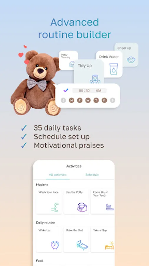 Control Smart Teddy with our app, and discover activities for hygiene, daily routine, mindfulness, and more!