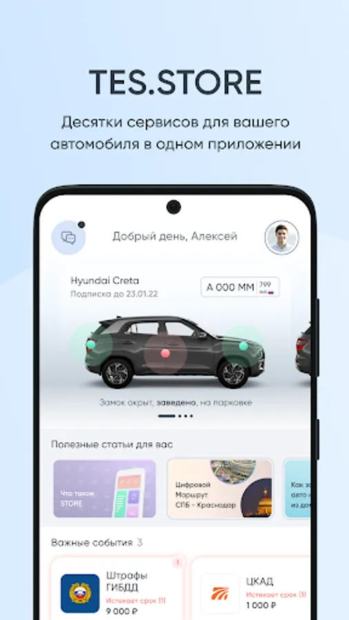 Always be calm about your car: the TES.STORE app (tes) will inform you about the evacuation and help you find a parked car. Convenient online monitoring will allow you to control the car from anywhere in the world.