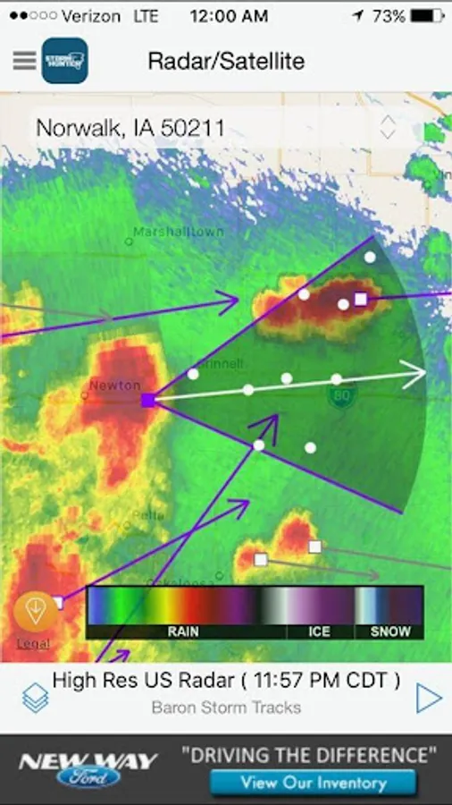Storm Hunter Weather is sponsored by the McLaughlin Family companies in Iowa, Including New Way Ford, New Way Auto Group, McLaughlin Imprint and Apparel and Hurricane Motorsports. Advertisement links include exclusive discounts on new and used automobiles and apparel for Storm Hunter users.