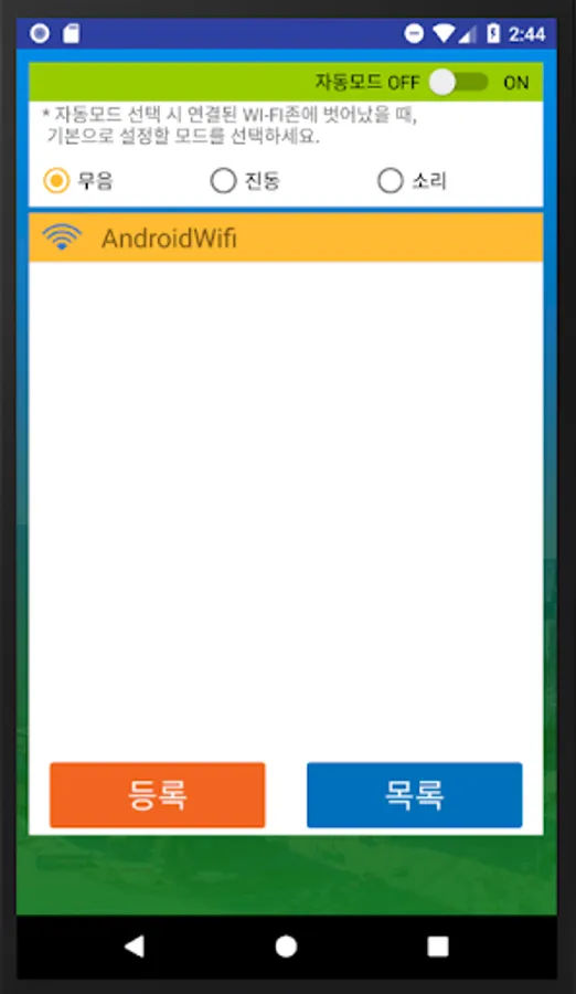 A. If the automatic mode is turned ON, it automatically switches to haenoteun sound mode by default at the top of the main screen.