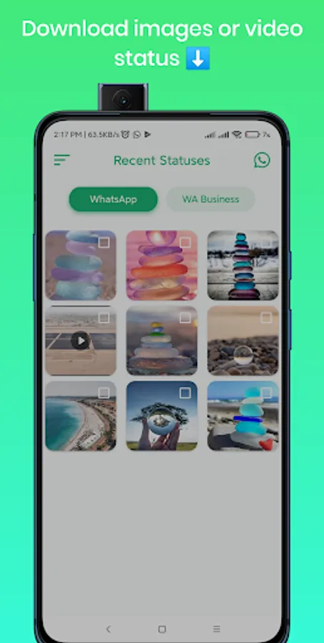 Status Downloader for WhatsApp allows you to save, share, and repost any of your WhatsApp or business WhatsApp statuses. Status Saver for WhatsApp lets you save all kinds of statuses, as Images, Videos, or GIFs.