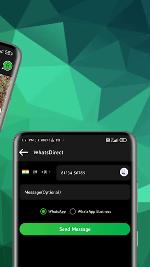 Direct chat is based on the official open api of WhatsApp, and help you to send direct message to someone not in your contacts. It's simple & safe to use.