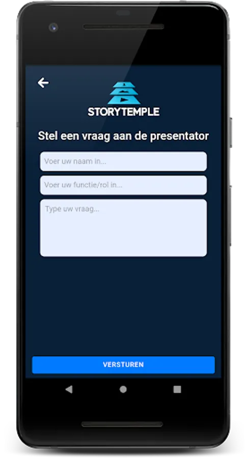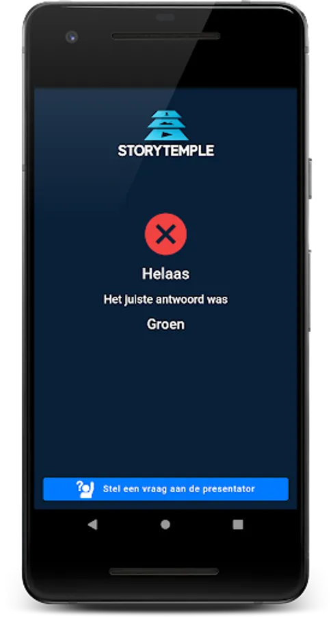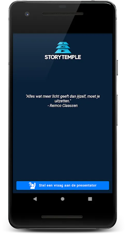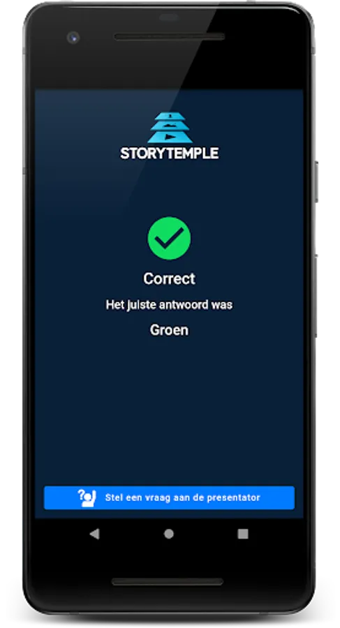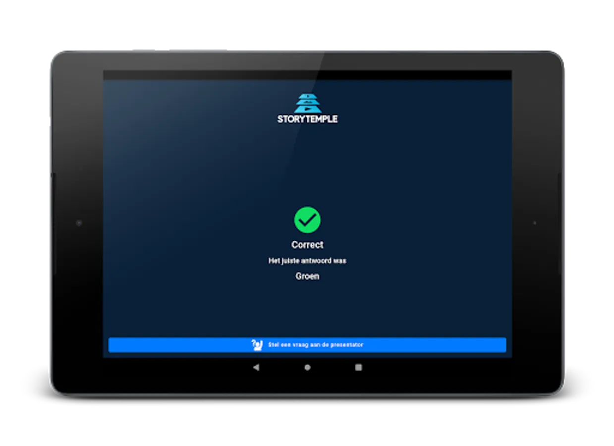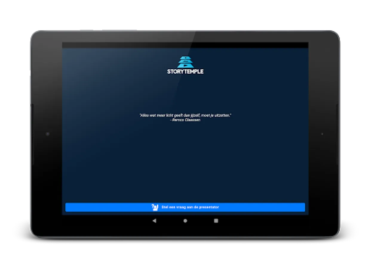 With StoryTemple IApp you can actively participate as a participant in a StoryTemple presentation or workshop. The presenter can send questions to the app, giving you the option to give your answer. Do you have a question during the presentation? You can also set this easily via the app. The presenter, who receives the question on his personal screen, will then include your question in his story.