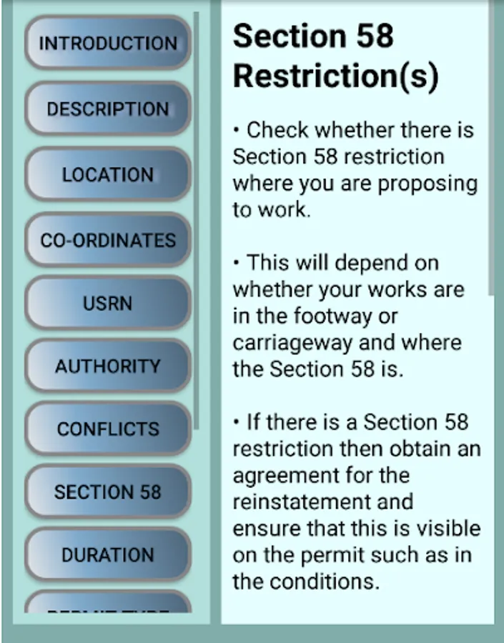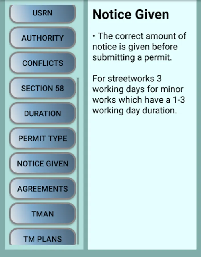This app is for viewing suggested steps when assessing and/or submitting street works permit applications using the EToN (Electronic Transfer of Notices) system in the UK. This is to help ensure permit applications are correct and meet the required standards.