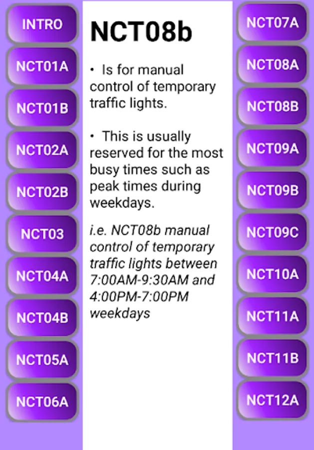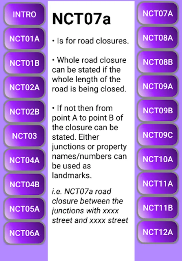 This app is designed as guidance for the UK Street Works National Conditions (NCTs). These conditions are used in permit applications to undertake road works in the UK on the Electronic Transfer of Notices (EToN) system.