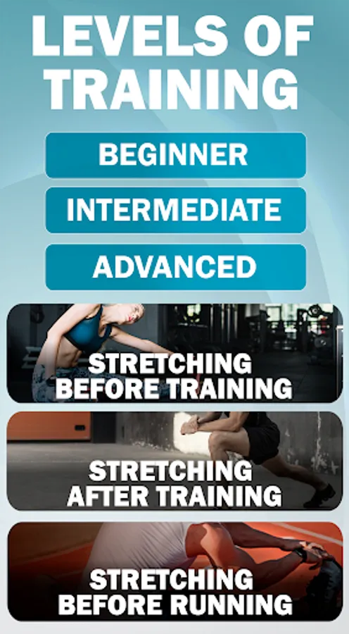 ● Stretching exercises cover all muscle groups and are suitable for all people, men, women, young and old