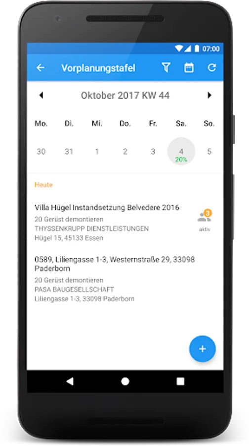The work orders are assigned to the respective projects and thus also the basis for timekeeping and the construction documentation. A precise daily scheduling and planning column is possible. Also, a risk assessment will be deposited.