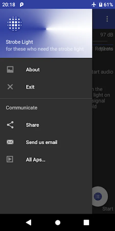 This App have been created to light your flash up if sound level higher than the threshold.