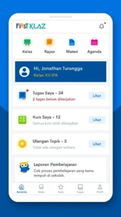 First Klaz is a platform integrated with school management system that facilitates all learning activities both Online, Offline, and Blended Learning and is equipped with various types of materials and Artificial Intelligence.