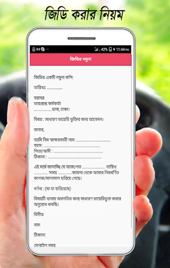 এই অ্যাপ থেকে আমরা জিডি করার নিয়ম, কেন জিডি করবেন, জিডির নমুনা কপি এবং কি কি বিষয় উল্লেখ করবেন সেগুলার বিস্তারিত পাবেন।