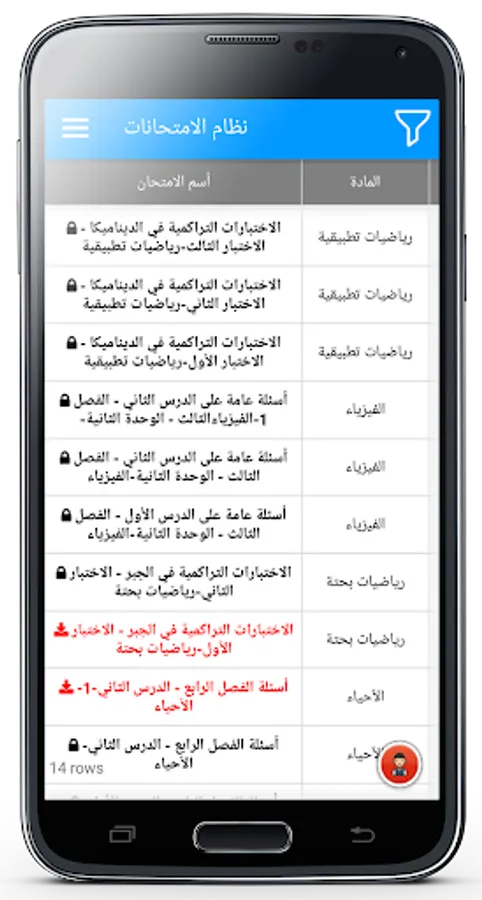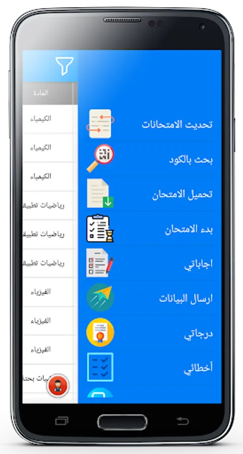 The application enables the student to perform the exams published in various subjects and may also see his grades and review his mistakes at any time