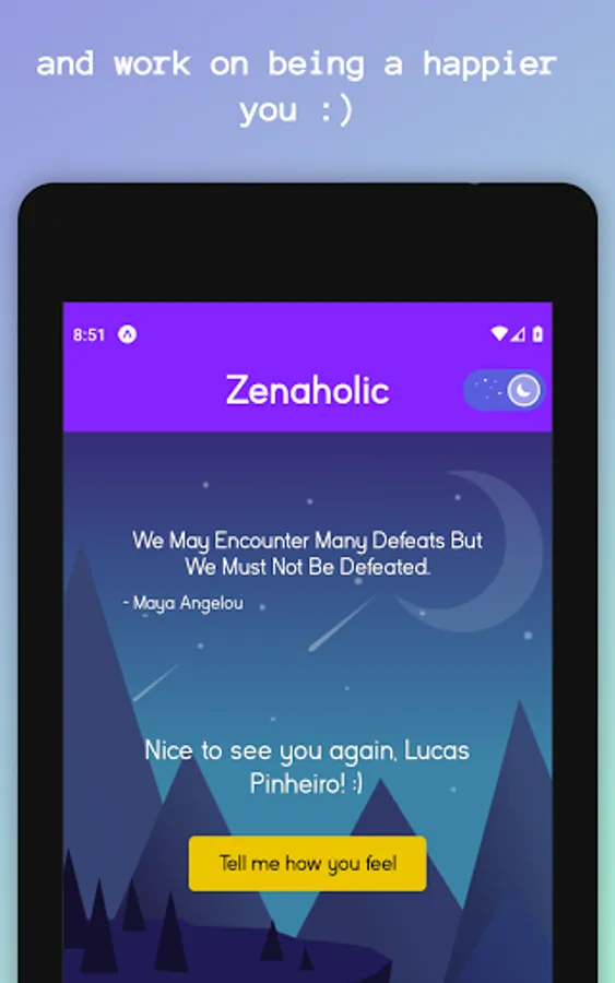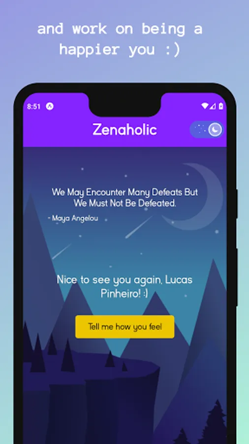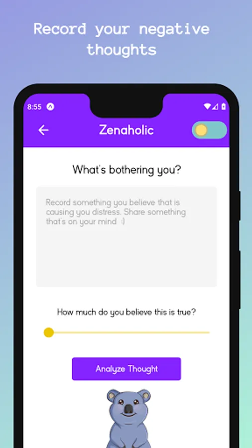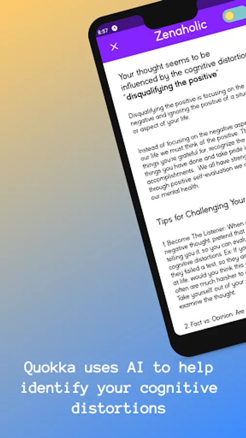 Using cognitive behavior therapy techniques and machine learning, Zenaholic aims to help you help yourself become happier and less stressed.