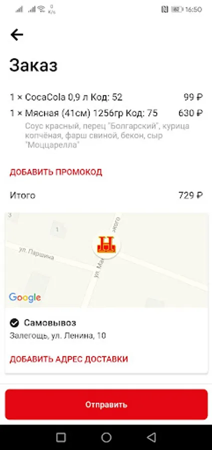 Mobile application of the delivery network "Npizza" - food delivery. From 10.00 to 22.00 we will deliver you hot pizza from the oven!