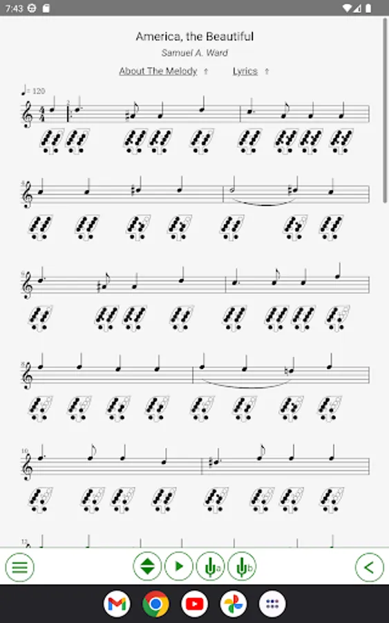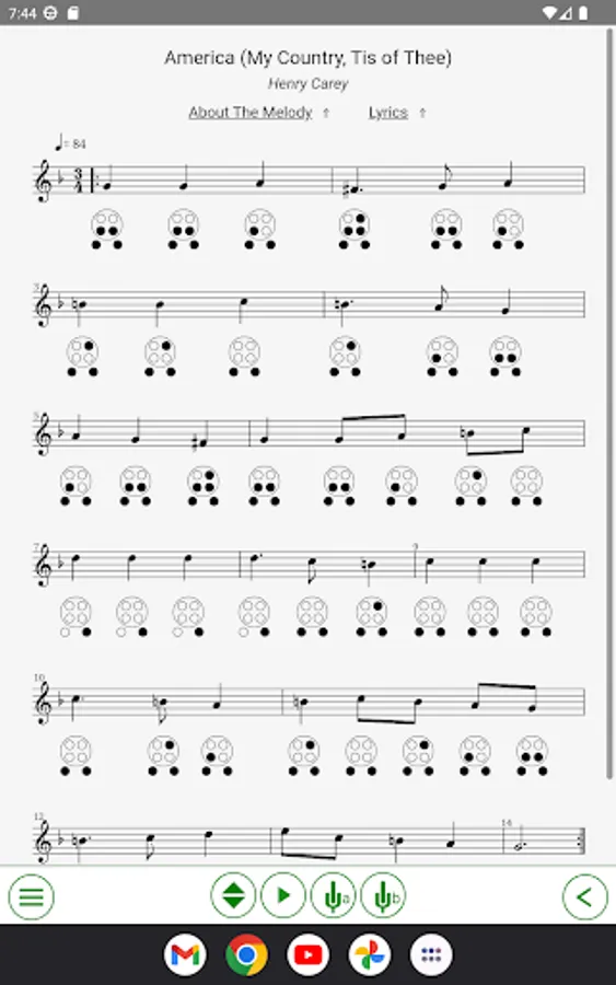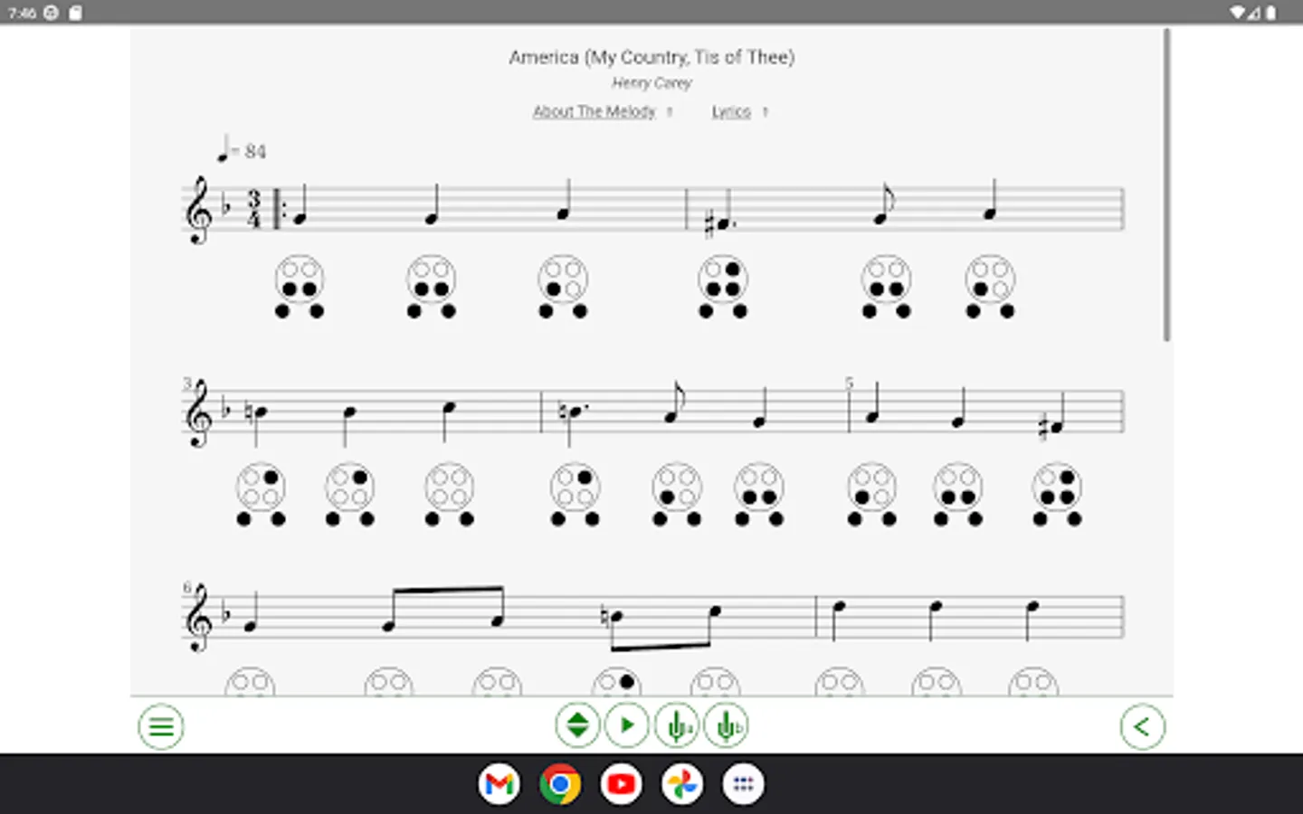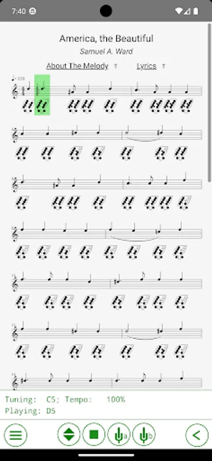Interactive collection of sheet music with notes and tablatures for 12-, 10- and 6-hole ocarina vessel flutes. This app will help you to learn playing popular traditional melodies, and some other tunes from the public domain.
