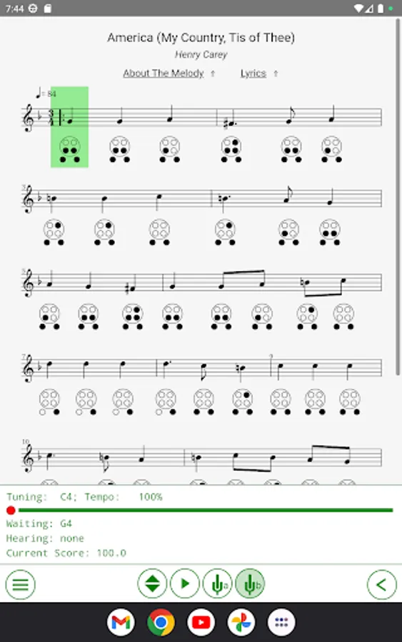 By default the app is supported by advertisements, and only a handful of melodies is accessible for free. Paid app subscriptions available in the in-app store unlock all melodies, and remove all advertisements. The profit from subscriptions will also allow for future app development, including new bug-fixes, new features, and new melodies.