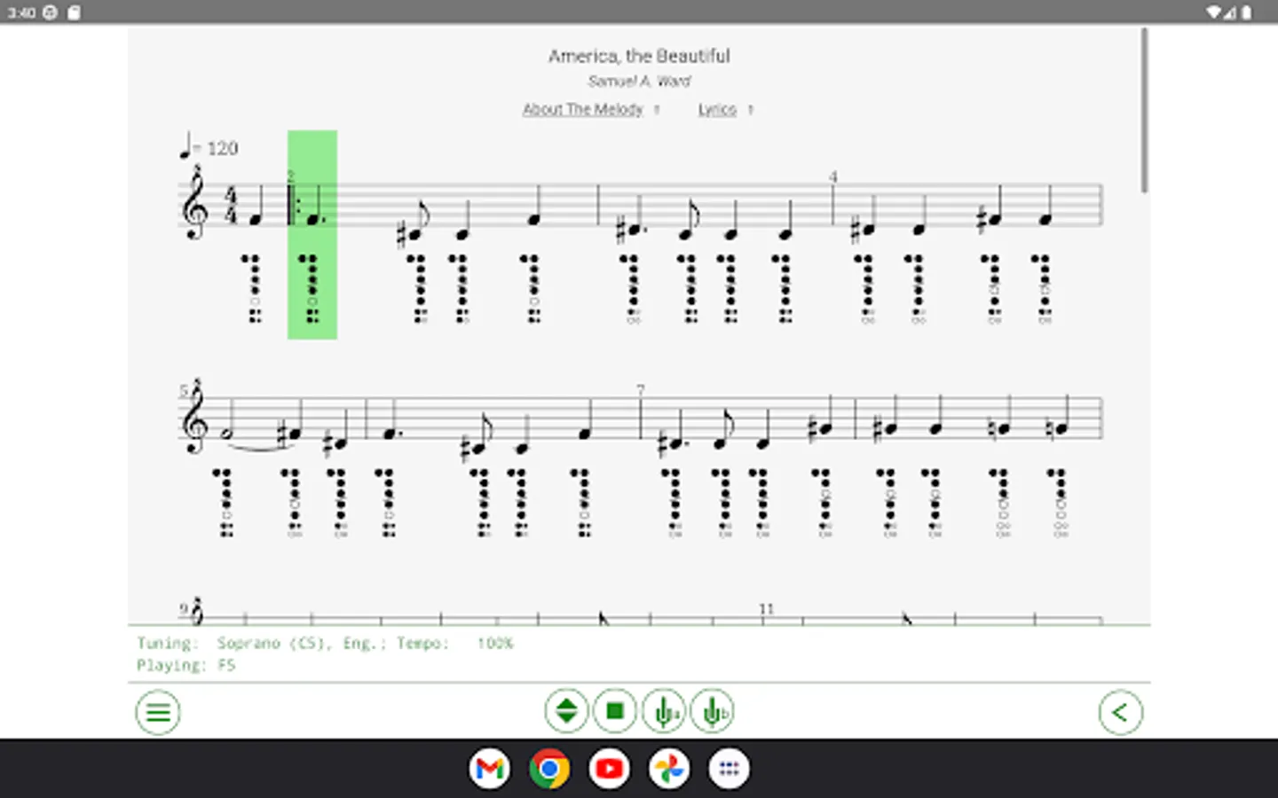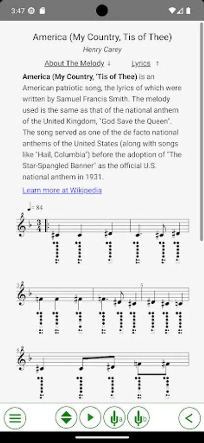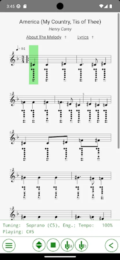 Interactive collection of sheet music with notes, tablatures, and interactive training for recorder flutes. This app will help you to learn playing popular traditional melodies, and some other tunes from the public domain.