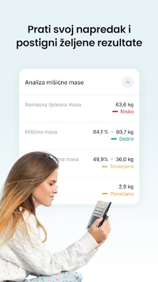 In the application, you can also find the history of all previous measurements, analysis of measurements of body parameters, and indicators of progress and comparisons.