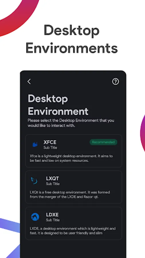 Interface) with various Desktop Environments such as LXQt, Xfce, and LXDE and lastly, GUI