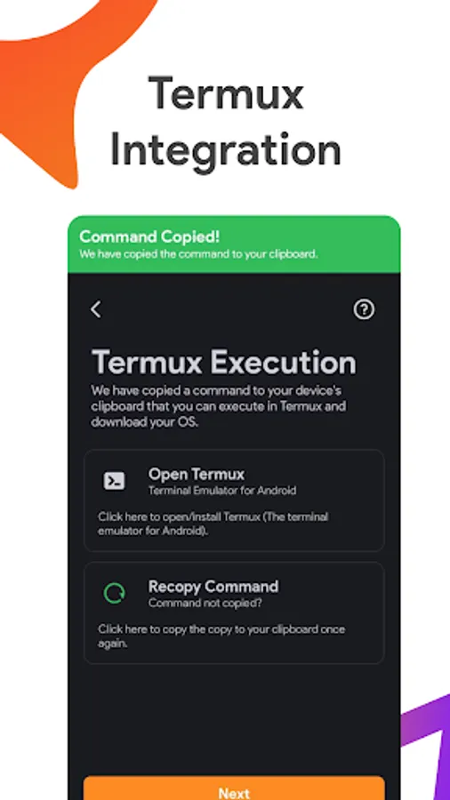 - Termux (F-Droid version) is required.