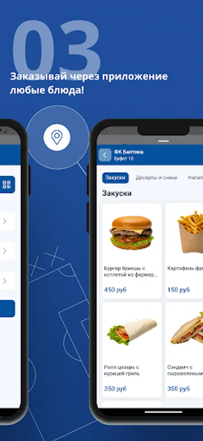 Заказывай еду и напитки прямо во время просмотра матча любимой команды.