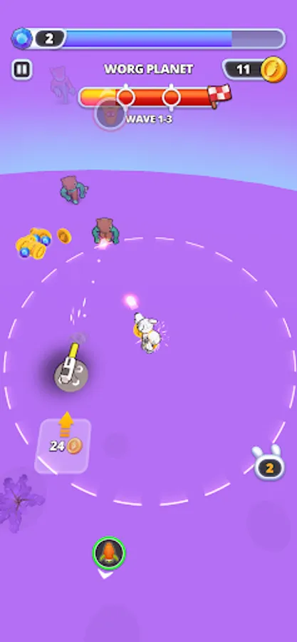 Every planet he visits, he plants carrots inside a protective bubble. But it’s not easy! Local barbarians on each planet try to stop him. They don’t want him taking their carrots.