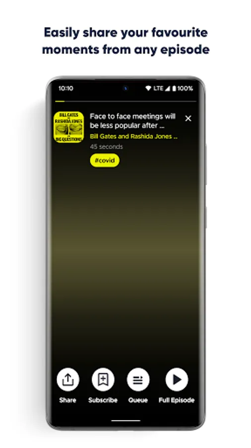 Bites are central to the entire listening experience. From choosing topics you’re interested in, to picking what goes next in your queue.