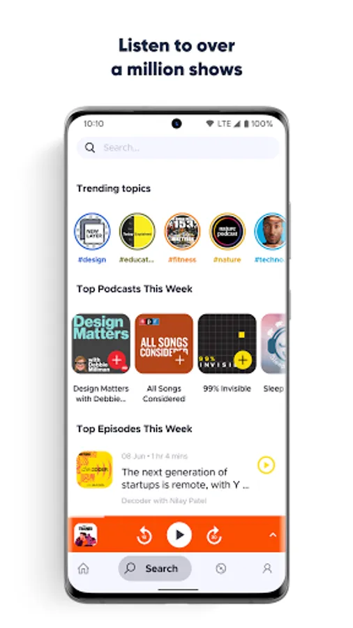 Pretty soon, you’ll be skimming through podcasts, saving the best bites, following niche topics and listening to hidden gems. This is what finding new stories should feel like.