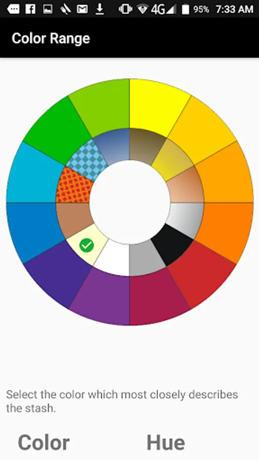 Colour categories are set based on a colour wheel divided down to tertiary level colours. Enter your stash info by main colour category. To track a colour based on hue, tint, tone, or shade, first categorize the colour by its primary, secondary, or tertiary level category, then insert the specific colour name (i.e. "pink") in the NOTES section. You can use the keyword search function on the SEARCH page when you want to find them.