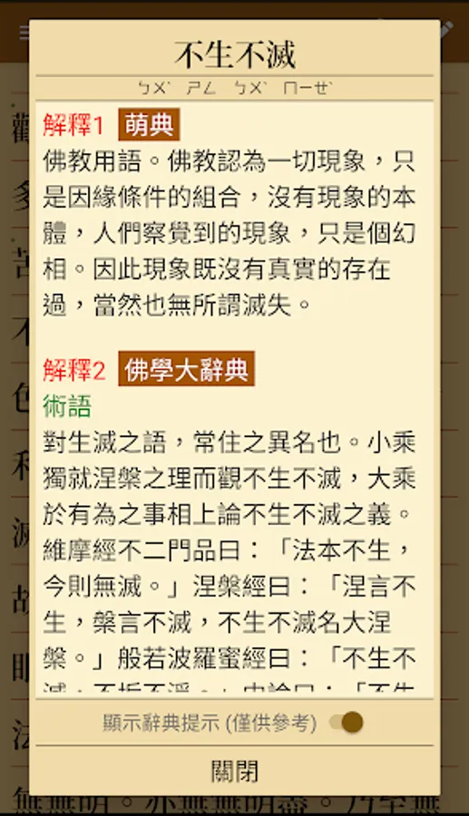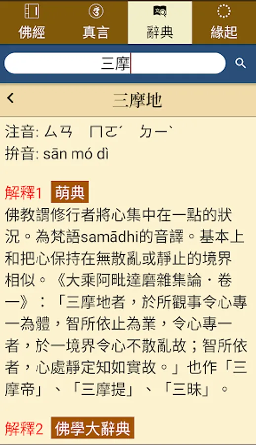 • Buddhist dictionaries: The dictionary is compiled by Ding Fubao, with an income of more than 30,000 entries, and integrates cute dictionaries. The explanations are close to the vernacular, easy to read and understand.