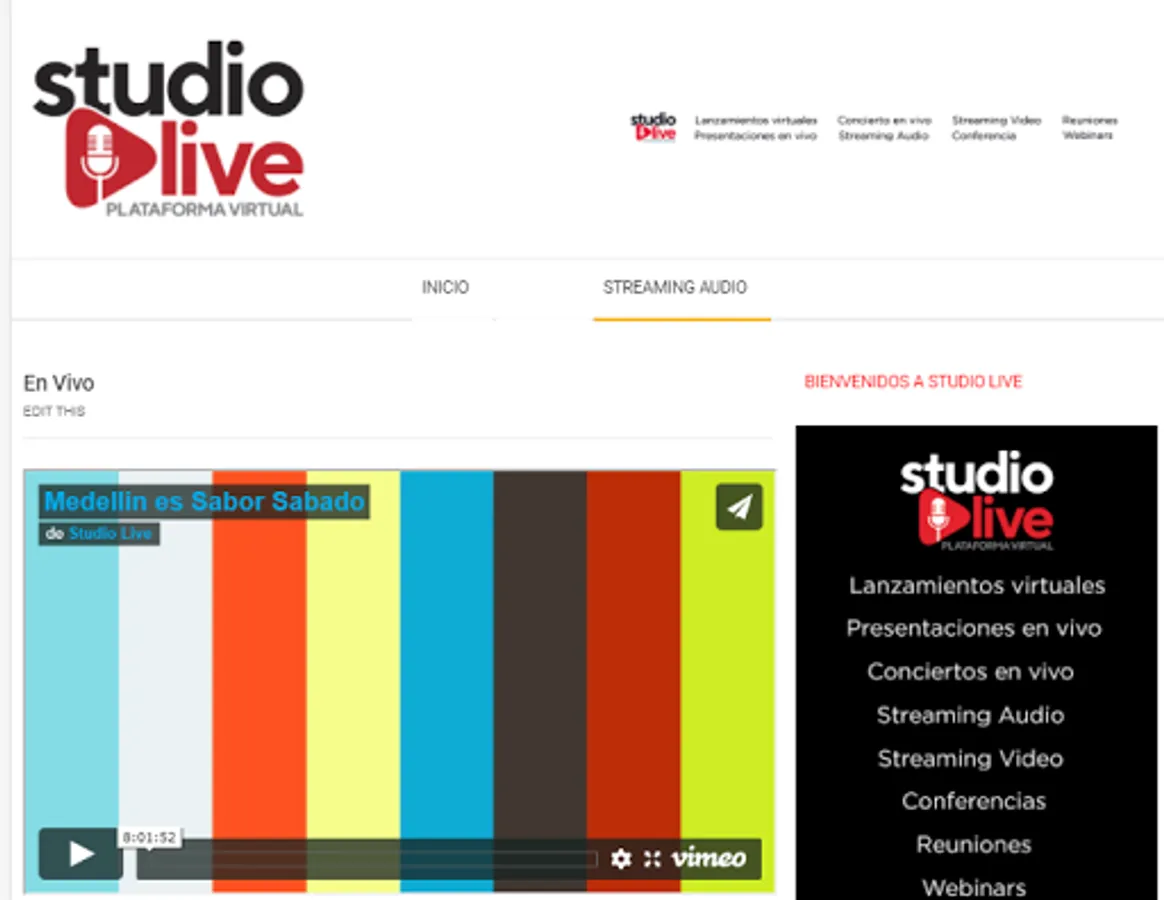 Welcome to www.studiolive.com.co, specialists in virtual events, live presentations, concerts, streaming audio and VIDEO, conferences, meetings, webinars. Contact us and enjoy the best quality www.studiolive.com.