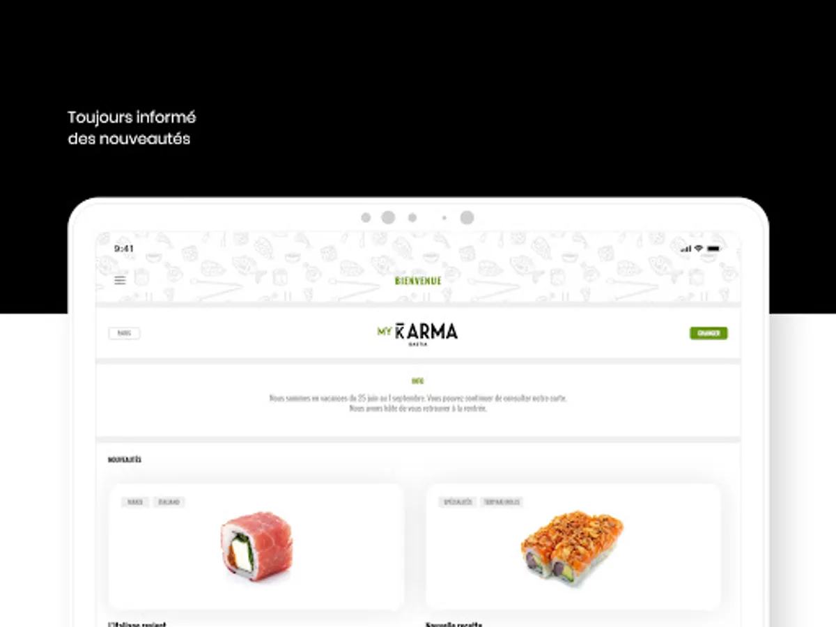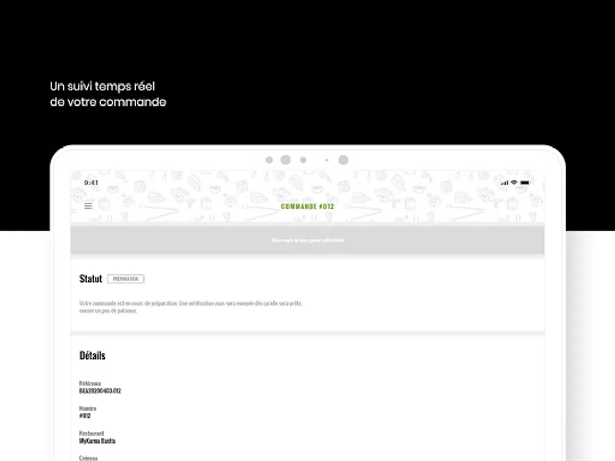 The MyKarma application allows you to order your favorite dishes in a few clicks and follow the progress of your order in real time.