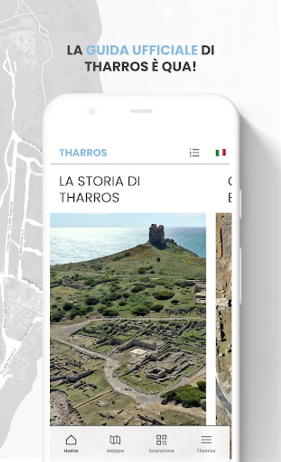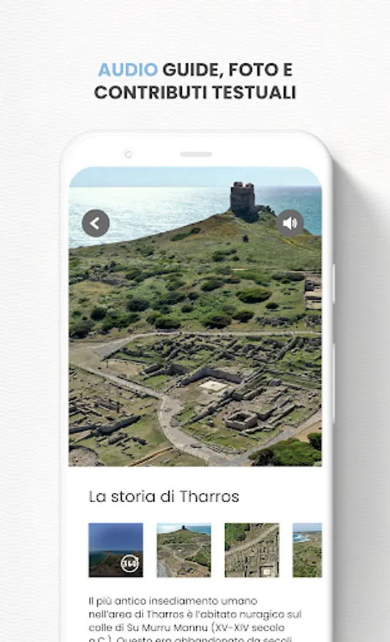The new official Tharros app will guide you along 11 of the 19 points of the archaeological area, combining a few simple features with photos, 360 ° photos, audio guides and textual contributions specially made for your visit. In the application you will find all the essentials for your visit, namely: