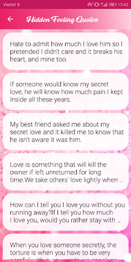 You can share your feelings from this hidden feeling app. We have collect all types of feeling status for you. So you can easily get your feeling and express to your love…