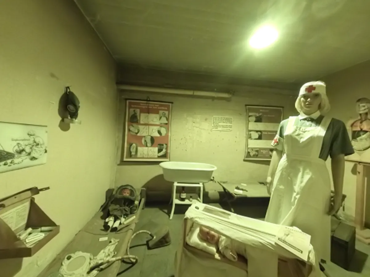 Experience the dark world of the Second World War in the air-raid shelter. Descend into the catacombs and explore the many cells and rooms. Let yourself be carried away into a concrete colossus without a window, which ensured the survival of over 3000 people every day. Collect information on gas and air protection in the Third Reich and discover numerous technical details of this luxury bunker.