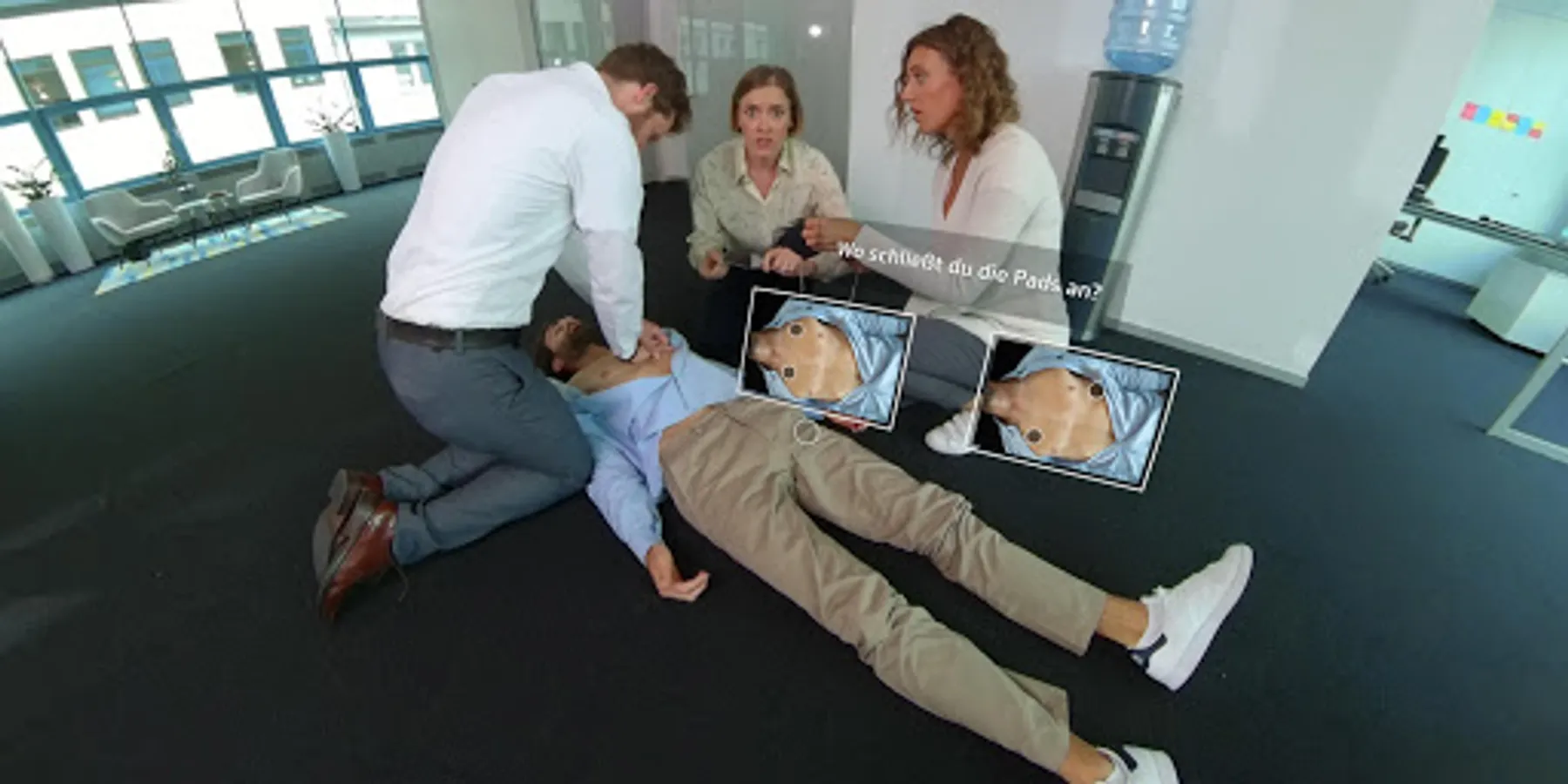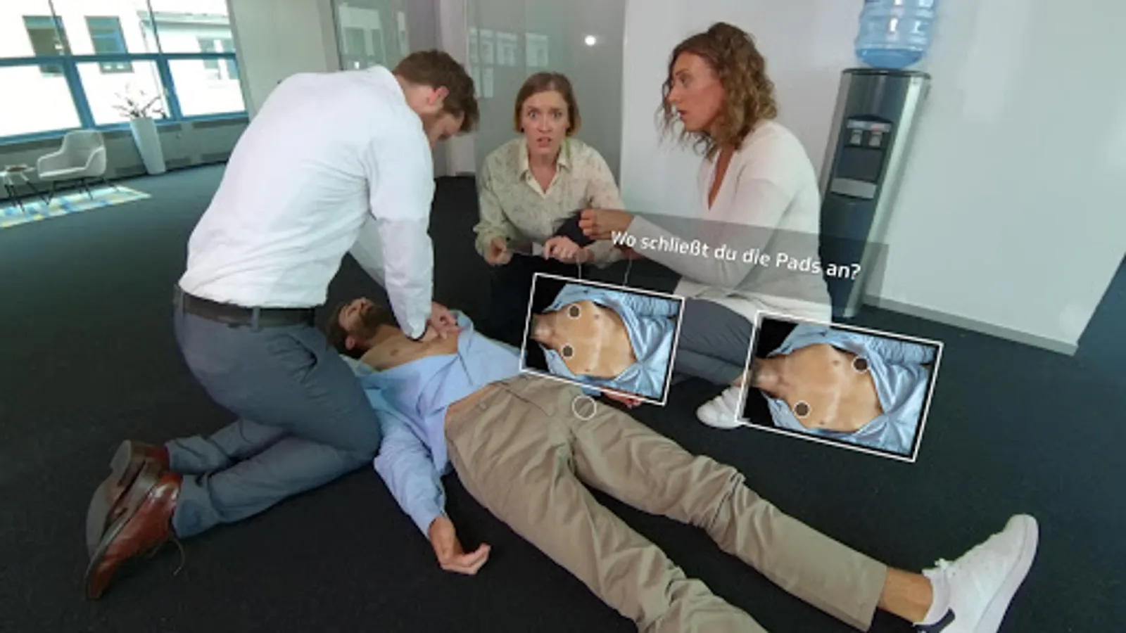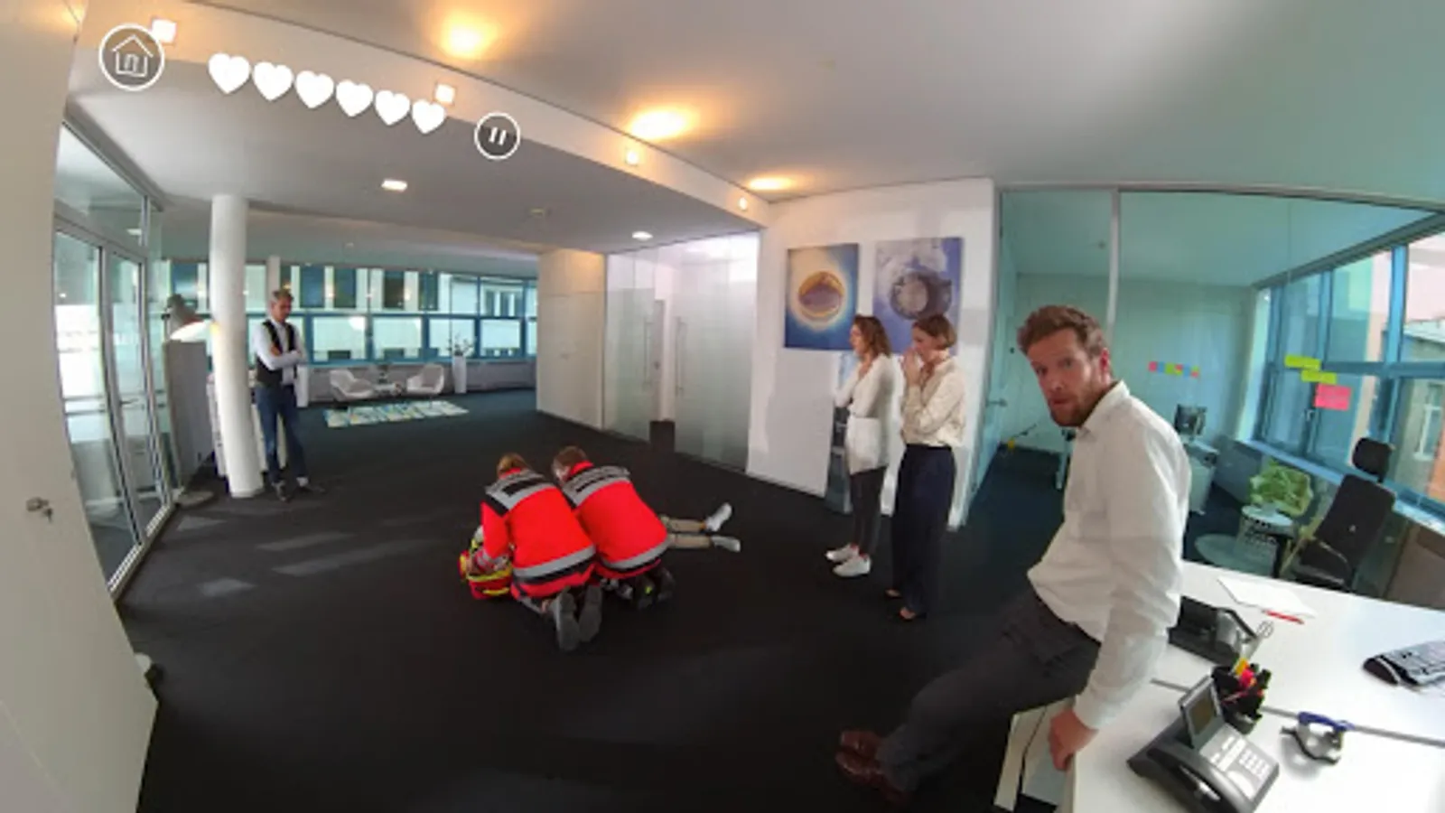 During the experience, questions appear that you have to answer correctly as quickly as possible using eye navigation - every second counts! This is the only way you can positively influence the course of the game and save your colleague until the paramedics arrive.