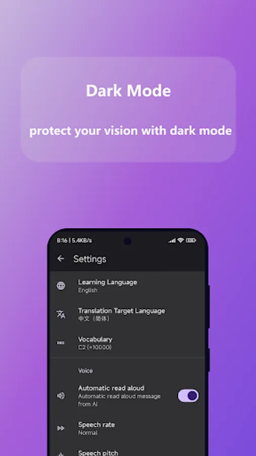 4, Supports setting vocabulary. TalkAI allows you to adjust the vocabulary used in the dialogue according to your own situation, gradually improving your language level.