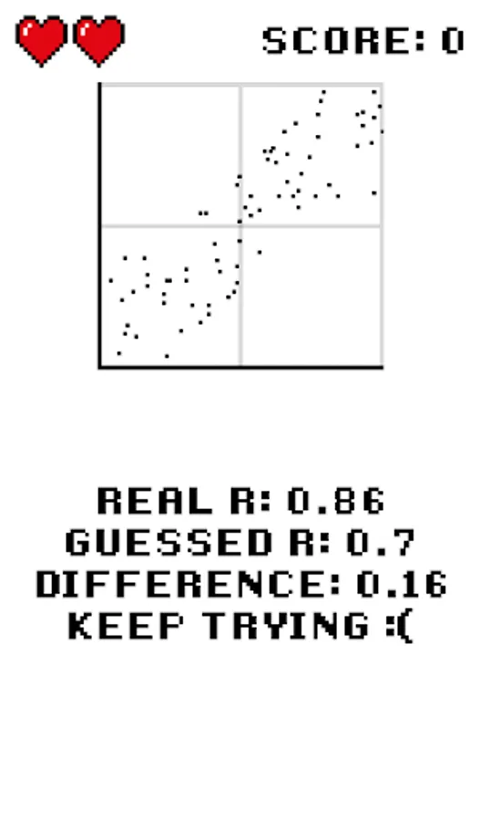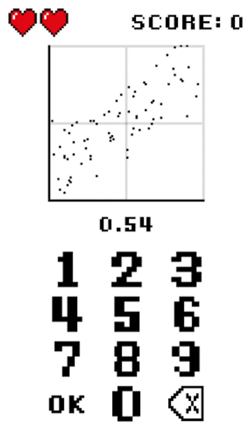 The aim of the game is simple: Try to guess how correlated the two variables in a scatter plot are, the closer your guess is to the true correlation, the better.