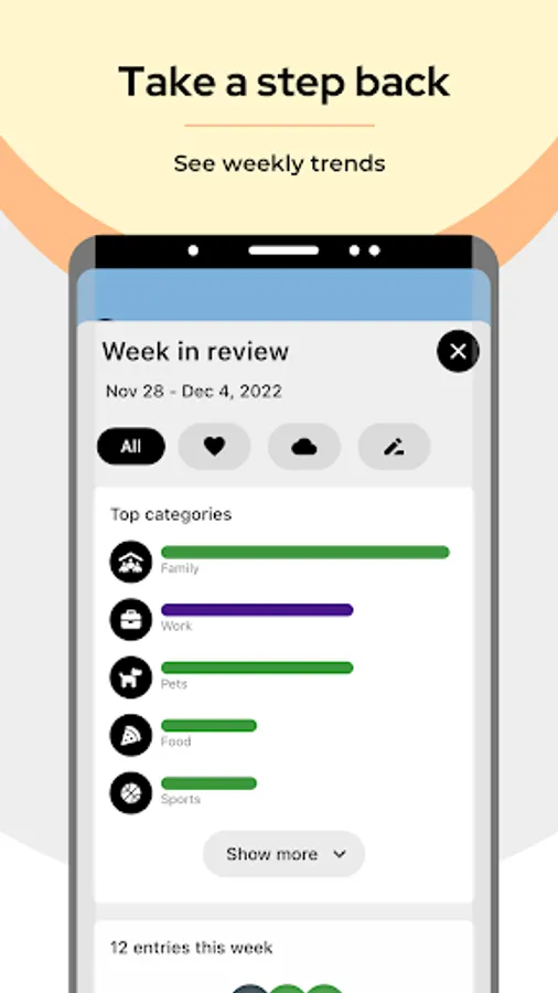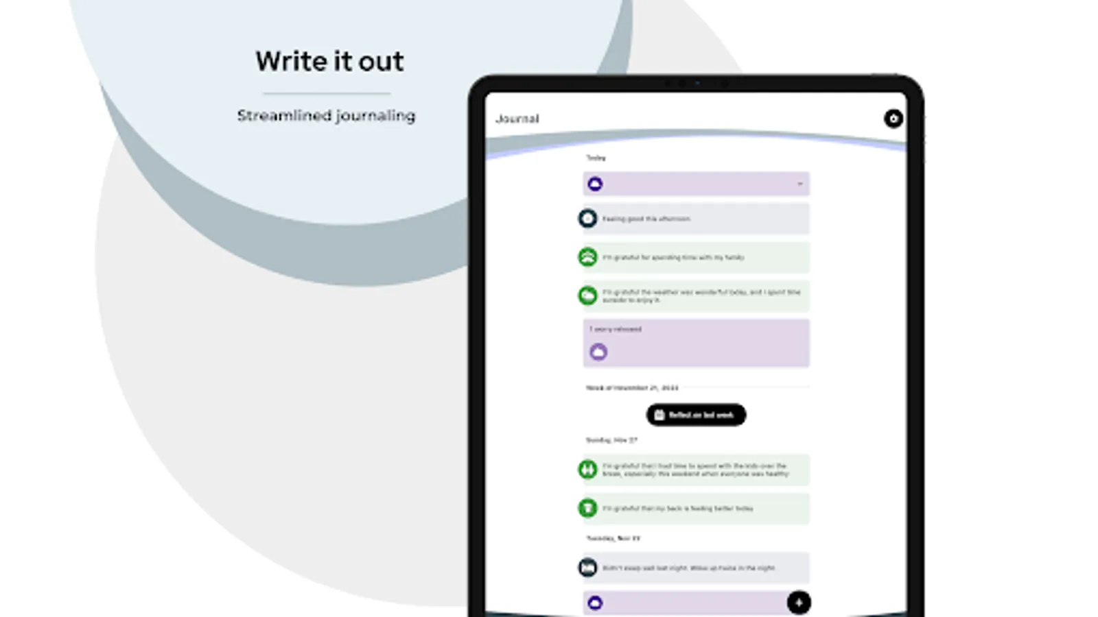 • Capture your thoughts with free-form entries and reflect with weekly recaps