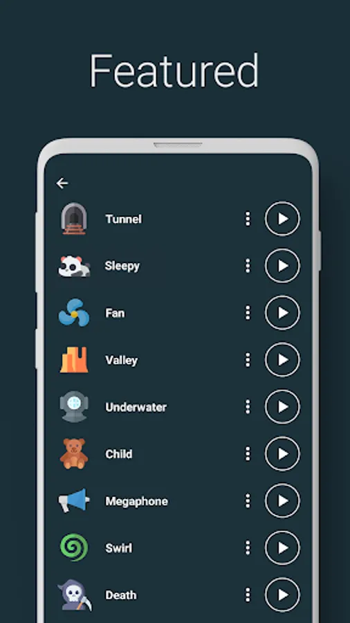 • More than 25 effects: robot, alien, zombie, helium, sleepy, chipmunk, death, cave, underwater, devil, telephone, swirl, fan, ... and many more!