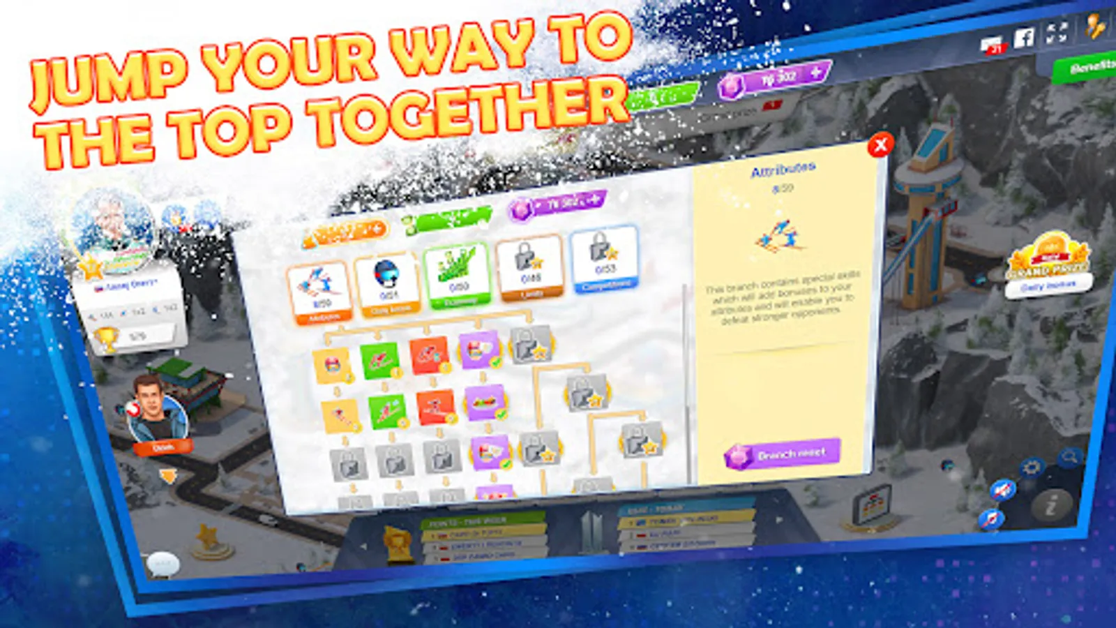 Ski Jump Mania 3 is a sports game for every winter sports fan, but especially for ski jumping enthusiasts. Play on a brand new server and experience the thrill of flying down a snow-covered slope and soaring through the air like a professional ski jumper. With realistic physics and intuitive controls, you'll have to perfectly time your takeoff, control your flight, and make a perfect landing to score big. Compete against players from around the world and climb the global leaderboards to become the ultimate ski jumping champion! Or join a club with your friends and jump your way to the top together!