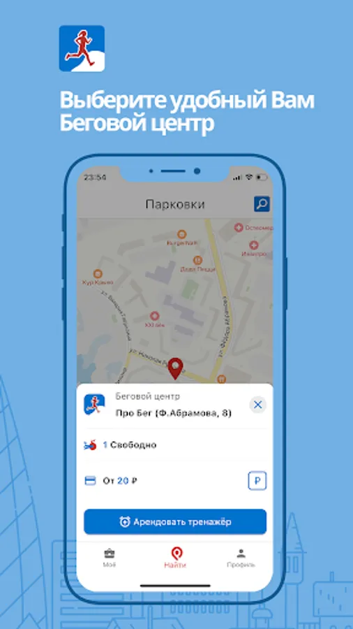 The PRO Beg running space is located in the Severnaya Dolina residential complex. This is a unique place for those who lead a healthy lifestyle. By downloading the mobile application, you can book a cardio machine for the required time.