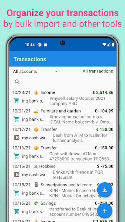 Track your expenses, monitor your transactions, create your weekly or monthly budget, save money and see all your personal finances in one place.